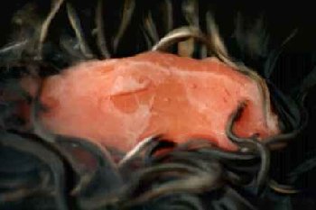 Pigmented elvers (6 weeks post migration to freshwater ) feeding on cod roe
