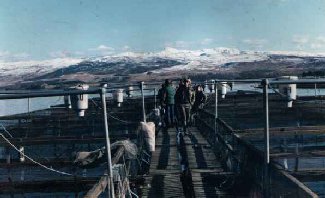 Cage structure - freshwater system, made from wood and polystyrene (under walkways) as floats