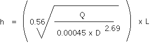 headloss : Q = 0.00045 x D2.69 x H0.56